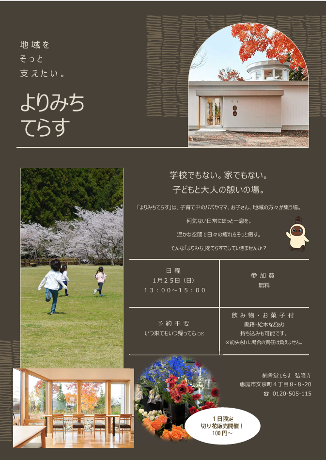 この度、納骨堂てらすでは地域の皆様ともっと交流を深めたいという想いから「よりみちてらす」をオープンいたします!